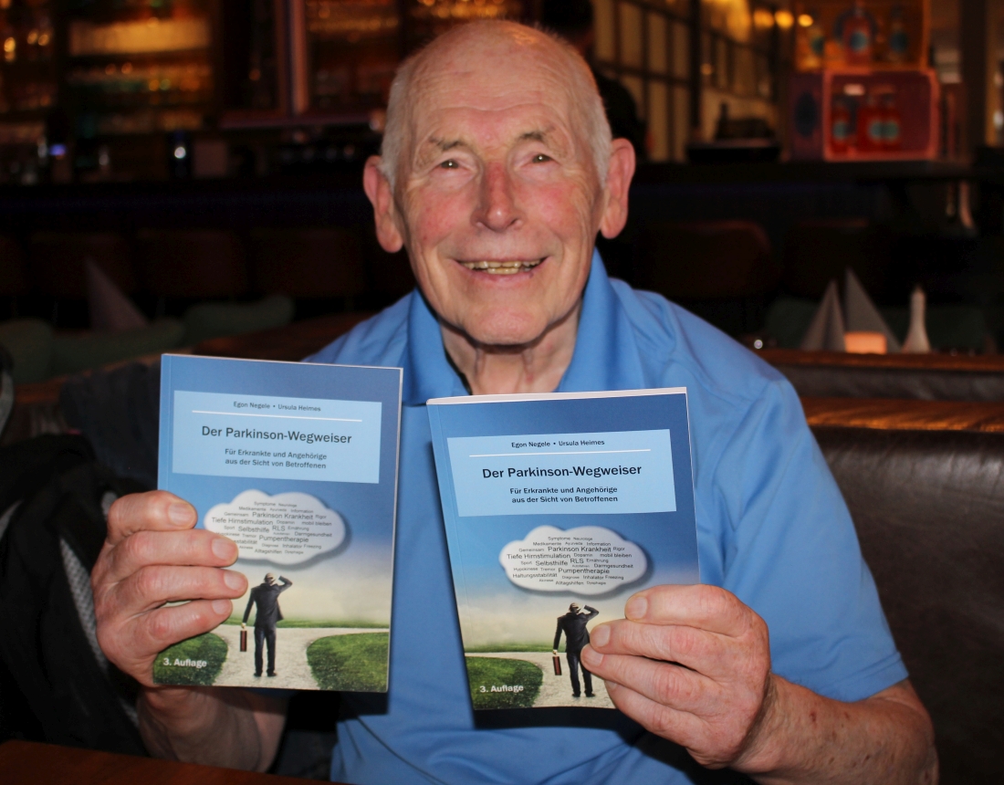 Es begann als lose Blattsammlung mit nützlichen Erklärungen und Tipps. Die Seiten wurden kopiert und weiter gereicht, irgendwann wurde eine erste Broschüre gedruckt und dann war der Wegweiser so umfangreich, dass er 2019 als Buch im tredition Verlag (ISBN 9783347710955) aufgelegt wurde. Damit hatten nun auch andere Kranke, außerhalb der Neusser Parkinson-Gruppe Zugriff auf den mutmachenden Wegweiser. Seit 2025 liegt die dritte, erweiterte Auflage mit vielen neuen und aktuellen Themen vor. Auch konnte Egon mehrere renommierte Ärzte als Gastautoren gewinnen. So hat z.B. Prof. Dr. Dirk Woitalla, Chefarzt der Katholischen Kliniken der Ruhrhalbinsel, einen Beitrag zum Thema Fahrtauglichkeit und Parkinson verfasst.